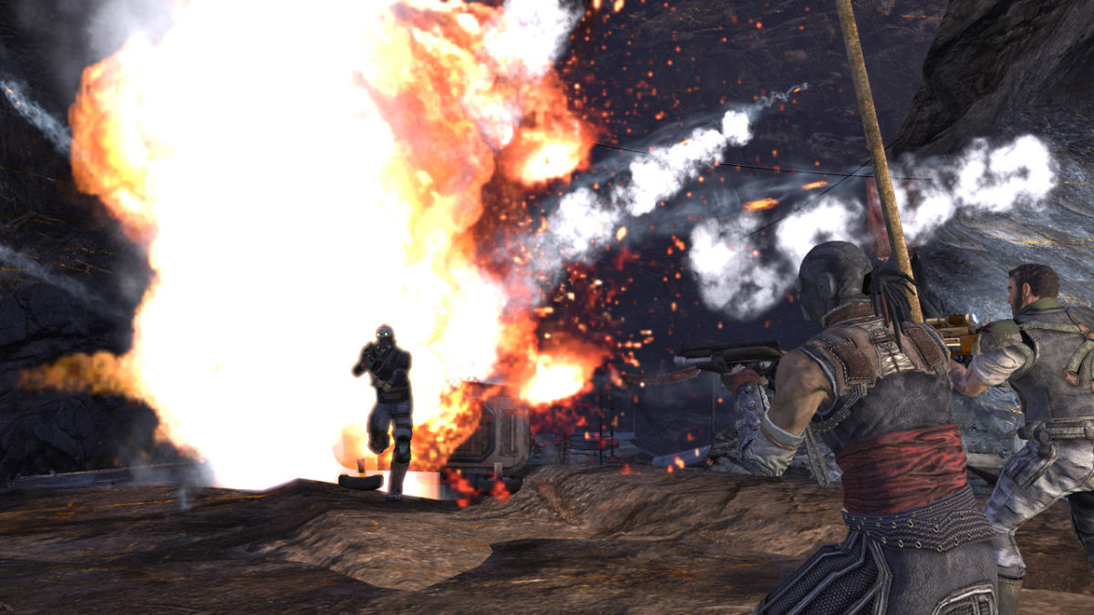La prova successiva è stata quella riservata alla modalità cooperativa che, prevista per quattro giocatori, consente l'inserimento di un nuovo partecipante, in qualsiasi momento dell'avventura, aiutando il creatore della partita a portare a termine la propria missione. Un qualcosa di già visto anche in giochi come Leaft 4 Dead, ma che in questo caso assume un ruolo completamente diverso e, forse, anche più decisivo per le sorti della missione stessa. La buona integrazione di ruoli/orientamenti nel coop può essere la chiave di volta per il successo del team e, più in generale, per lo stesso Borderlands che vuole incentrare molte delle sue attenzioni proprio sulla buona riuscita di questo aspetto del gameplay.