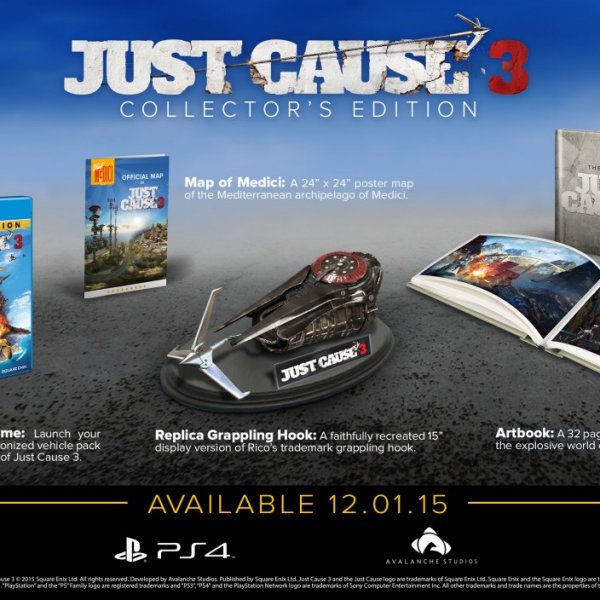 La JUST CAUSE 3: COLLECTOR’S EDITION sarà disponibile per PlayStation 4, Xbox One e PC l’1 Dicembre 2015, al prezzo di €99.99 per console e €89.99 per PC.