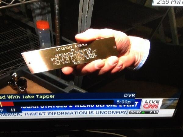 Nella giornata di ieri è apparsa in rete una immagine (postata dal sito americano CinemaBlend) in cui si vedeva chiaramente la targhetta dedicata al miglior attore protagonista, con inciso il nome di Leonardo Di Caprio.