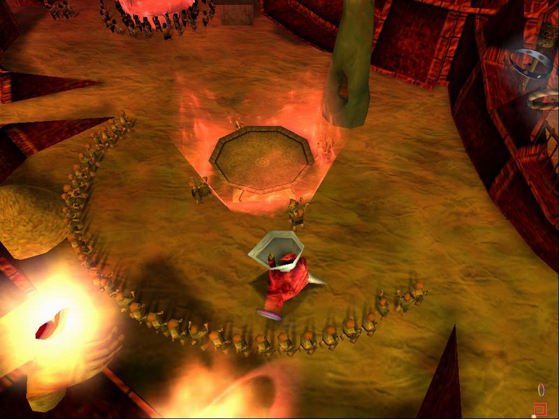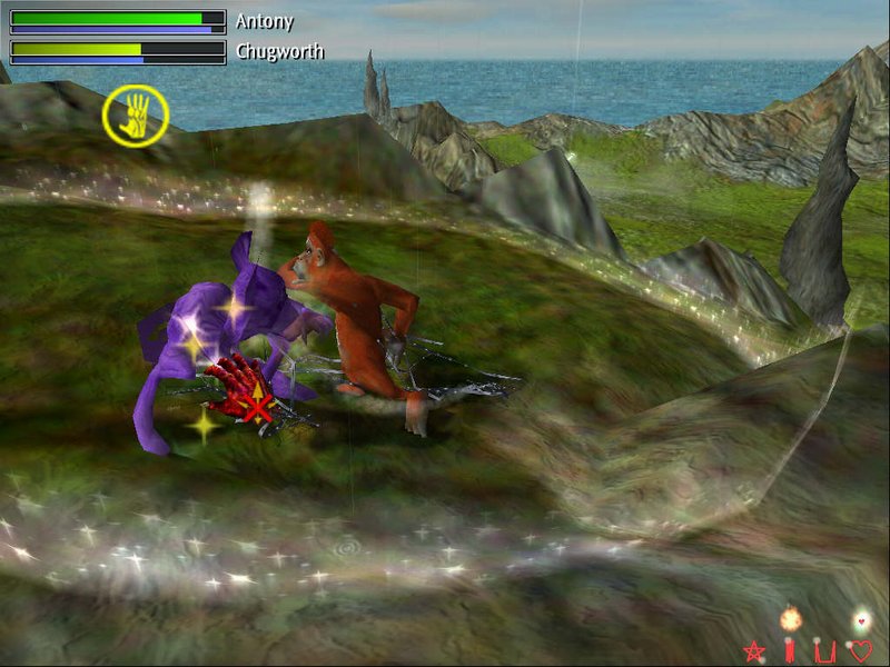 L'unica interfaccia è rappresentata dalla mano "di dio" (no, non quella di Maradona...), la nostra presenza "fisica" nella Land Of Eden. Agendo con i tasti del mouse, e posizionandola in determinate posizioni ai bordi del monitor, potremo spostarci a destra, a sinistra, in su e in giù nel nostro territorio, e zoomare, partendo dall'alto da una visuale completa dell'isola fino ad arrivare a vedere il dettaglio del volto di un qualsiasi piccolo personaggio, le sue azioni, l'interno delle piccole tende e così via. Nel tutor ci viene spiegato passo per passo come farlo, ma, ciò che più colpisce, è quella che è stata definita la "Gesture Recognition": infatti, per lanciare gli incantesimi, basterà semplicemente muovere la mano in determinati modi (illustrati in basso a destra sul monitor), e potremo vedere se stiamo compiendo il movimento giusto grazie alla scia lasciata dalla mano stessa. Con un primo movimento si può passare alla selezione degli incantesimi, degli incantesimi sulle creature, alla selezione dei collari da utilizzare con la creatura, o alla ripetizione dell'ultimo incantesimo scagliato, con un secondo si può scegliere la singola magia da invocare. Per alcuni miracoli, poi, è necessario tracciare un circolo per specificare la sua zona d'azione. E' più difficile da descrivere che da utilizzare, ma vi possiamo confermare che funziona ed è efficace, e a meno di non aver un mouse sporco, solitamente i movimenti vengono riconosciuti quasi sempre al primo colpo