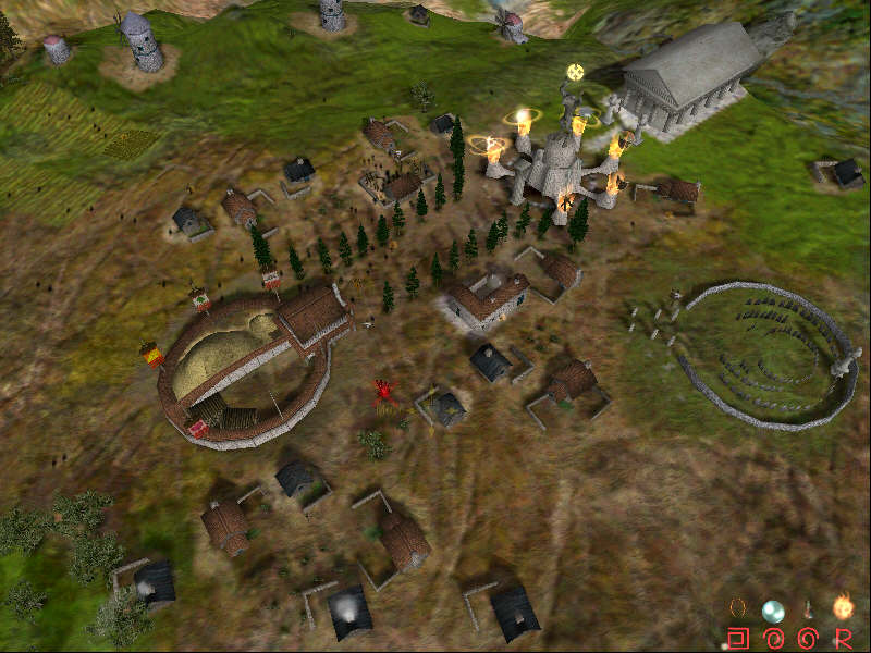 Importante è anche il centro del villaggio dove è presente un "monumento" alzando ed abbassando il quale si può aumentare o diminuire il numero di adoratori che vanno presso il tempio, e sul quale sono "visualizzate" le magie che un determinato villaggio ci metterà a disposizione. Sostando con la mano su questo edificio sapremo anche la fede che i nostri credenti hanno in noi e, nel caso il villaggio non sia ancora sotto la nostra influenza, la "quantità" di fede che dobbiamo ancora conquistare per averlo