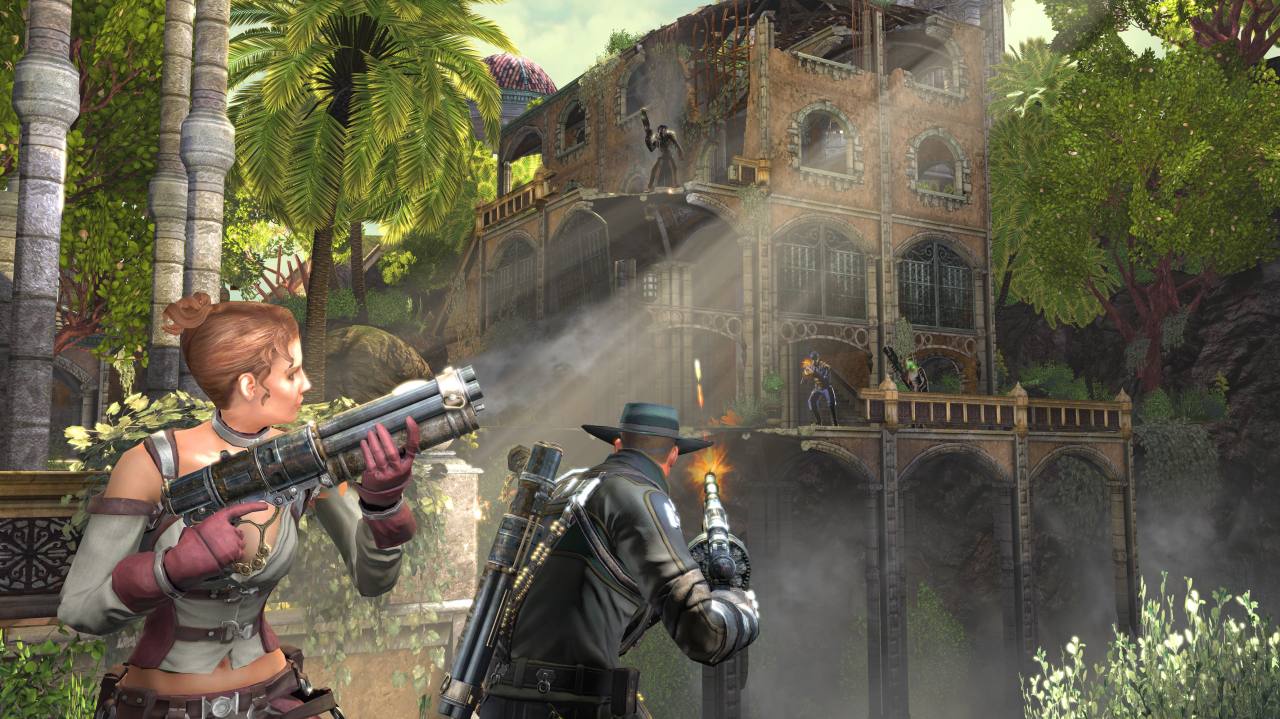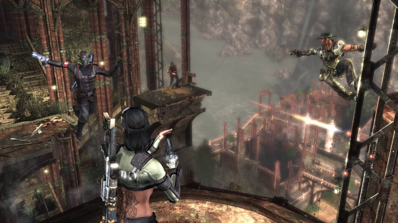 La maggior parte del tempo, lo passeremo ad estrarre e rinfilare la pistola (o comunque l'arma scelta), dalla fondina, sparando su avversari dotati di un quoziente intellettivo a dir poco deprimente. Quando non saremo impegnati a far saltare le cervella androidi dei nemici, saremo chiamati a saltare, letteralmente, di palo in frasca sui vari punti dell'ambientazione dove ci troveremo a muoverci, come dei novelli Spider-Man, in una sorta di brutta rivisitazione di un immortale classico del passato, ovvero Donkey-Kong. E, se è innegabile che il background possa in qualche misura avere il suo fascino, il tutto è stato malamente rovinato da una realizzazione tecnica ben al di sotto degli standard, sia sul piano grafico, che su quello sonoro.Il nostro alter-ego risponde al nome di Hamilton Rourke : ci troviamo in un diciannovesimo secolo alternativo dove, nel pieno di una guerra civile, robot a vapore e armi tecnologiche sono a disposizione delle fazioni in lotta. Il cattivo di turno, tale Prescott (qualcuno ha visto il film “Il segreto del mio successo”? I due “malvagi” hanno in comune nome e carisma...), è salito al potere grazie al denaro e alla violenza, schiacciando il popolo sotto un giogo di schiavismo e abusi.
