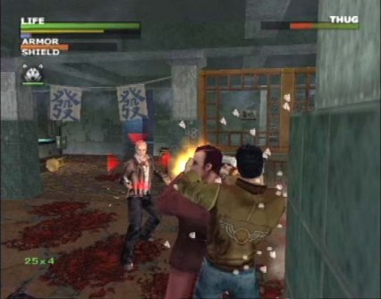 “Il mio nome è Shadow. Che nome bizzarro direte voi. Beh, a dire il vero non è il nome di una persona. Io sono un cane, un cane poliziotto per essere precisi. Ma non un cane poliziotto comune. Sono il cane di Jack Slate. Essere il cane di Jack non è mai stato semplice, ma ciò che io e lui abbiamo passato in questi ultimi giorni le batte davvero tutte. Ora è finita, si torna alla vita “normale” di tutti i giorni e finalmente posso nuovamente indirizzare le mie attenzioni verso la barboncina spocchiosa dell'appartamento accanto (tanto lo so che le piaccio). Che dite? Sto divagando? Lo fareste anche voi dopo esservi fatti un giro all'inferno con biglietto di sola andata... per fortuna Jack aveva me e ne siamo usciti tutti interi (sono sempre stato un cane modesto io). Forse sarebbe meglio se cominciassi a raccontare dal principio. Era una giornata come tante a Grant City. Jack parlava al telefono a propositi del controllo in un cantiere che avremo fatto da li a poco. Io nel frattempo cercavo di tirare l'attenzione di Lulù... Ma si! La barboncina di cui parlavo prima! Ma non c'era il tempo... era giunto il momento di entrare in azione...”.Namco, da buona e vecchia produttrice di giochi arcade, si è sempre prodigata, anche con l'avvento delle console casalinghe, per offrire ai videogiocatori prodotti immediati e fruibili dai più e che conservassero il feeling del vecchio videogame fatto di schemi semplici e collaudati. In quest'ottica Dead to Rights si pone come un gioco d'azione con visuale in terza persona, condito da tutta una serie di elementi che vedremo nel corso di questa recensione, non ultimo la presenza del cane Shadow, compagno di mille avventure del protagonista del gioco. Tutto ha inizio durante un controllo che Jack sta conducendo con Shadow all'interno di un cantiere dove si sospettano loschi giri. La situazione diviene presto calda e sciami di zanzare di piombo non tardano a riempire l'aria già di per se tetra. Ma Jack che è tipo abituato a “maneggiare” situazioni calde non si fa cogliere impreparato.