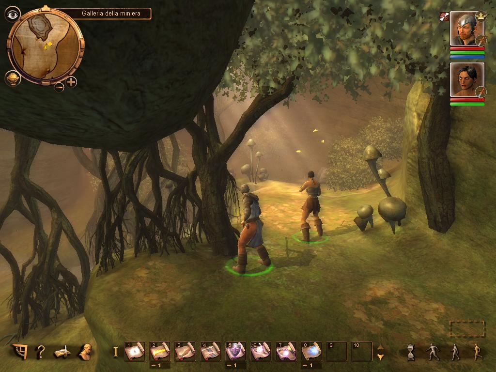 Il sistema di controllo dell'opera distribuita da FX Interactive, vanta due opzioni : è possibile scegliere di demandare l'intero asse dei movimenti e dei combattimenti al mouse, oppure coordinare gli spostamenti attraverso la nostra fida tastiera, lasciando al topo l'interazione con l'ambiente e la gestione della visuale. Quest'ultimo aspetto è sicuramente il meno riuscito della produzione : se è vero che è possibile “zoomare” sul personaggio fino a rendere Drakensang quasi un gioco in terza persona, è altrettanto vero che la telecamera, non essendo perfettamente centrata e senza possibilità alcuna di controllo da parte dell'utente, tende fin troppo spesso ad incastrarsi nello scenario, con l'ovvio risultato che non sempre saremo in grado di seguire correttamente l'azione...cosa,questa, che risulterà particolarmente scocciante, specialmente quando ci troveremo impegnati in un combattimento.
