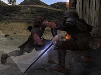 Come già detto sopra, lo scopo del gioco è mostrare al giocatore come ci si deve sentire nel campo di battaglia: e infatti in tutte le missioni dovremo combattere, quasi sempre da soli, o con l'aiuto di pochi personaggi guidati dalla CPU, contro centinaia e centinaia di nemici fra cui archetti, goblins e i terribili Uruk-Hai. Il nostro arsenale è estremamente vasto: abbiamo ben due, e dico due, armi a disposizione. Ok, forse non è poi così vasto. Però sono giusto quelle che ci servono per far vedere a quei mostriciattoli quanto valiamo davvero. Abbiamo un'arma principale per il combattimento ravvicinato, e un arco per colpire i nemici più lontani. Possiamo sferrare attacchi veloci, per colpire i nemici più deboli, oppure attacchi violenti, per spezzare lo scudo ai nemici e quindi renderli vulnerabili agli attacchi veloci. Ovviamente possiamo pararci (con centinaia di nemici da ogni parte sarebbe impensabile che neanche uno vi colpisca, purtroppo è così, sia nei film che nel gioco), e anche dare calci ai nemici per buttarli a terra. Una volta che i nemici sono caduti possiamo finirli subito premendo il grilletto destro e sferrando una pugnalata a terra, per evitare di combattere di nuovo contro di loro, e premendo il grilletto sinistro si usa l'arco.