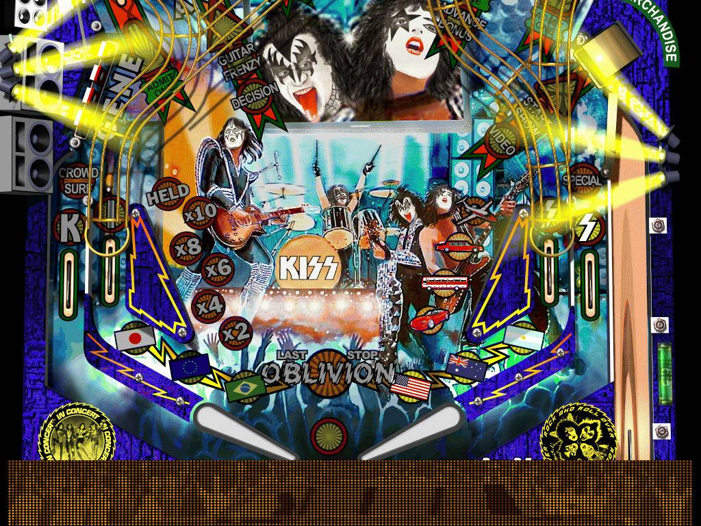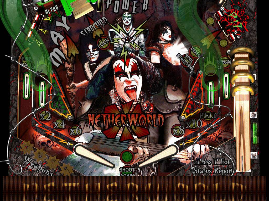 La struttura di questo primo pinball è decisamente ricca e complessa, la pressione dei tasti destro e sinistro muovono entrambi due flipper, oltre ai canonici due quindi con la pressione del tasto destro muoveremo un flipper situato in una zona sopraelevata in alto a sinistra, viceversa con quello a sinistra muoveremo un flipper, situato circa al centro del tavolo e fondamentale per collezionare un buon numero di bonus. I bersagli da abbattere portano i nomi dei tre Kiss Gene, Ace e Paul, Peter invece si trova in prossimità dei funghetti in alto a sinistra