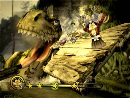 Saltiamo a piè pari i discorsi concernenti il filone in cui questo titolo è inseribile, e vediamo di fornirvi un'idea chiara del gioco che ci troviamo tra le mani. Ecco, Kung Fu Chaos (KFC da questo momento) a parer mio è il classico prodotto adatto per le serate con gli amici, qualche pizza e coca cole alla mano, un gioco dall'approccio semplice e veloce, capace di garantire divertimento senza troppi fronzoli, anche grazie a una modalità multiplayer davvero spassosa. Sconsigliato quindi a chi può giocarci solamente in singolo? Più o meno. Ho sempre pensato che una console di ultima generazione debba offrire all'utenza una buona fascia di giochi multiplayer e la potente piattaforma Microsoft risponde perfettamente a queste caratteristiche. Questo party game di impostazione maggiormente beat'em' up è semplice, immediato e graficamente appagante, non senza difetti, alcuni dei quali certo non lo eleveranno al rango di capolavoro, ma sicuramente si tratta di un gioco divertente, fin dalle prime partite. Non vedo quindi perché consigliarlo a chi non avrebbe modo di sfidare tonnellate di amici.L'ambientazione di gioco è quella tipica dei film di arti marziali a basso costo: un simpatico e maldestro produttore decide di realizzare con pochi soldi e tante idee, molte delle quali strampalate, una serie di pellicole sulle arti marziali rivedendo in chiave orientale e umoristica alcuni dei kolossal della cinematografia degli anni '90. E così i lunghissimi scontri tra ninja saranno ambientati tra i dinosauri in un improbabile e fittizio Jurassic Park, sui ponti del gigantesco transatlantico Gigantic che dopo la collisione con un iceberg andrà lentamente a picco, o fra i palazzi durante una spettacolare invasione di ufo in una grande città, in stile Independence Day. Tutto ciò avviene però con una scenografia palesemente fittizia, comica e pacchiana, con i tipici effetti di colore di un film a basso costo, con effetti speciali di scarso livello, lunghissimi salti appesi a dei visibilissimi fili di protezione o con scenografie disegnate che ruotano su un rullo. Insomma, unite la filosofia orientale, il cinema trash e tanto buon umore e avrete un'idea dell'ambientazione di questo titolo.