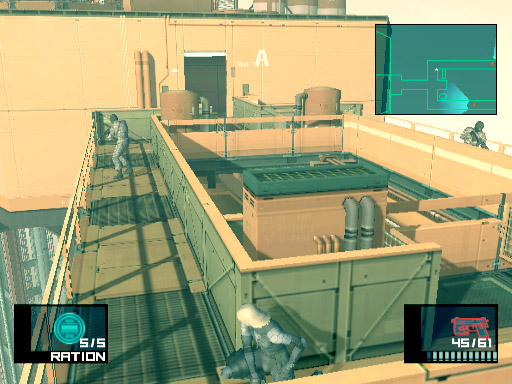 Vi sentireste come Raiden, impacciato, spaventato, con la necessità continua di comunicare tramite il Codec (la trasmittente inserita direttamente nell'orecchio) con il Colonel, il boss della FoxHound. Si vede che abbiamo a che fare con un pivello alle prime armi. Raiden non sa come procurarsi le armi, scivola sugli escrementi di gabbiano sul ponte della piattaforma, dimentica gli anniversari con la fidanzata Rosemary, che casualmente è anche l'analista dell'esercito che si occupa della sua missione. Non c'è male per un inizio, anche se, piano piano, Raiden si impossesserà di tutte le tecnica di combattimento, fuga ed acquattamento, ed il giocatore, contemporaneamente, dei segreti del controller Playstation 2, mai sfruttato in modo così completo come in Metal Gear Solid 2. Il lavoro sulla “manetta” Sony è stato incredibile, e tutti i tasti hanno un loro compito specifico. Potrete tirare pugni, usare l'arma principale, strisciare, acquattarvi, salire su piattaforme, tirare maniglie, appendervi, entrare in visuale soggettiva, agganciare i nemici, cambiare arma ed equipaggio. Imparerete a sbirciare oltre un muro, fiutare la presenza di un nemico, rotolare e sparargli. Oppure ad appendervisi un corrimano, attendere che passa la guardia di sotto, e scagliarvi su di lei per immobilizzarla. Imparerete a scagliare oggetti, a trascinare guardie stordite negli armadietti, a bussare sulle mura per attirare l'attenzione ed a gettare granate contro i sistemi elettronici per disabilitarli momentaneamente. Ma non c'è solo Raiden...