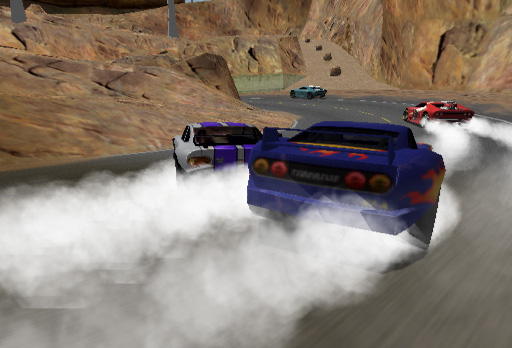 Rumble Racing offre più o meno tutti gli elementi sopra descritti: le corse attraverso svariate ambientazioni tipicamente statunitensi, i bonus da raccogliere come in Mario Kart e da utilizzare contro i nemici, i trampolini artificiali o naturali da utilizzare per esibirsi in capriole e svolazzamenti vari, senza dimenticare una gran serie di passaggi segreti e di scorciatoie da conoscere a menadito se si vuole primeggiare rispetto agli agguerriti nemici. Un mix, insomma, che richiama alla mente anche un riuscitissimo gioco di EA per N64 (forse l'unico vero buon esperimento di Electronic Arts per N64), ovvero Beetle Adventure, che da tempo aspetta un seguito annunciato e mai pubblicato... che sia riconfluito proprio in questo Rumble Racing?