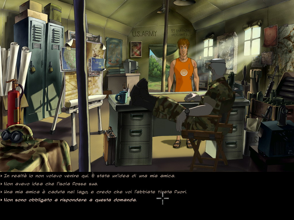 L'interfaccia è decisamente semplice, in quanto naturalmente opererete tutte le azioni tramite l'esclusivo ausilio del mouse: il tasto destro imposta l'azione da eseguire(solitamente quella di default è “guarda” e la seconda una qualche forma di iterazione, sia essa “parla”, “prendi” o “usa”) ed il tasto sinistro la conferma. Ovviamente potrete sempre contare su una schermata di inventario illustrata, in cui esaminare oggetti, combinarli tra loro o “estrarli” per farli interagire con l'ambiente. Da questo punto di vista talvolta Runaway 2 è un po' rognoso: capita spesso, infatti, che per combinare due oggetti dobbiate obbligatoriamente usare uno specifico dei due sull'altro, mentre viceversa Brian si rifiuta di fare alcunché, col risultato che quando vi trovate “alla frutta” e dovete andare per tentativi perderete circa il doppio del tempo a fare esperimenti. Inoltre, spesso non potrete operare determinate combinazioni se prima la trama, gli indizi e i dialoghi svolti non avranno raggiunto particolari svolte, con il risultato che a volte non “riprovate” ad operare combinazioni già tentate, convinti che non funzionino, mentre invece sarebbe ora di realizzarle.