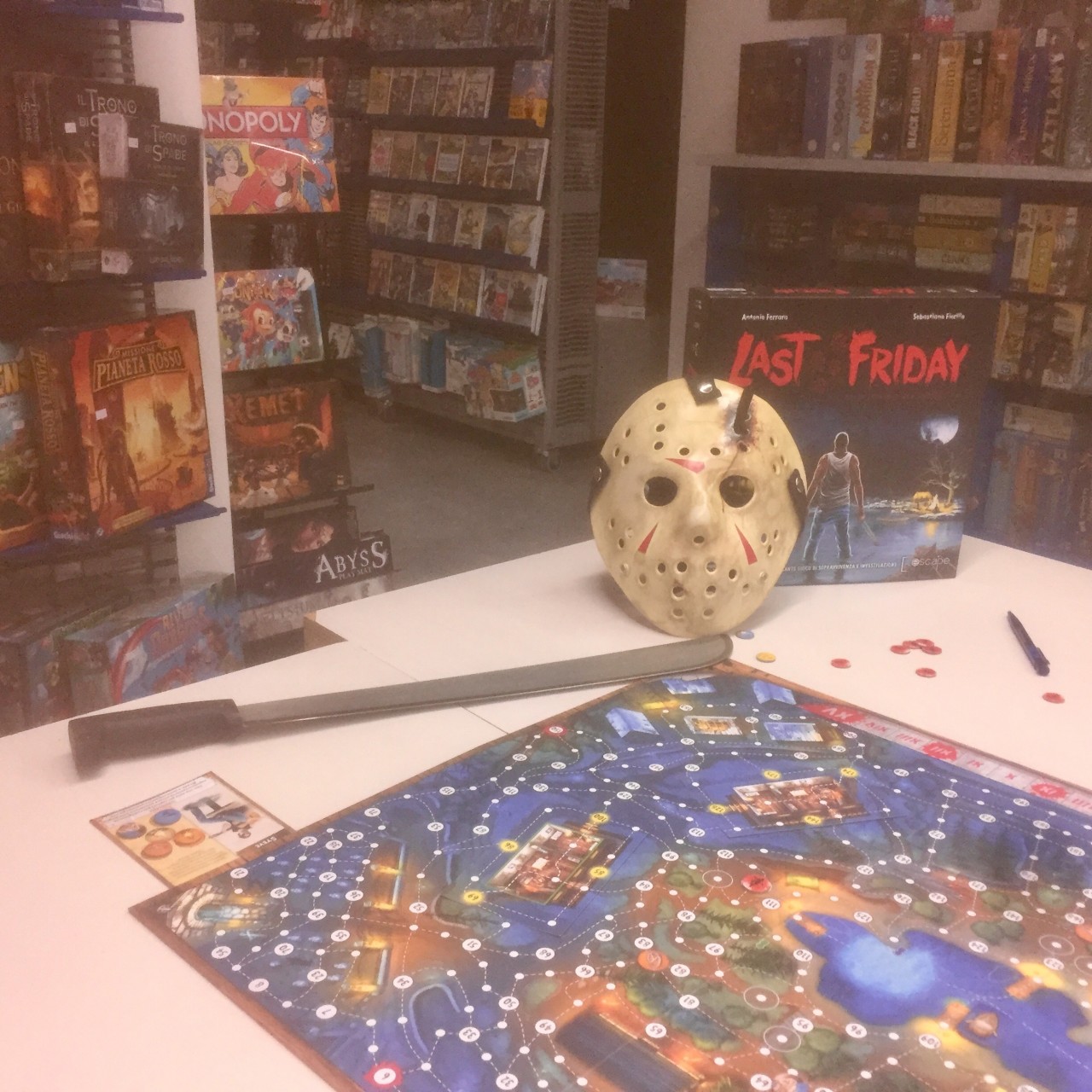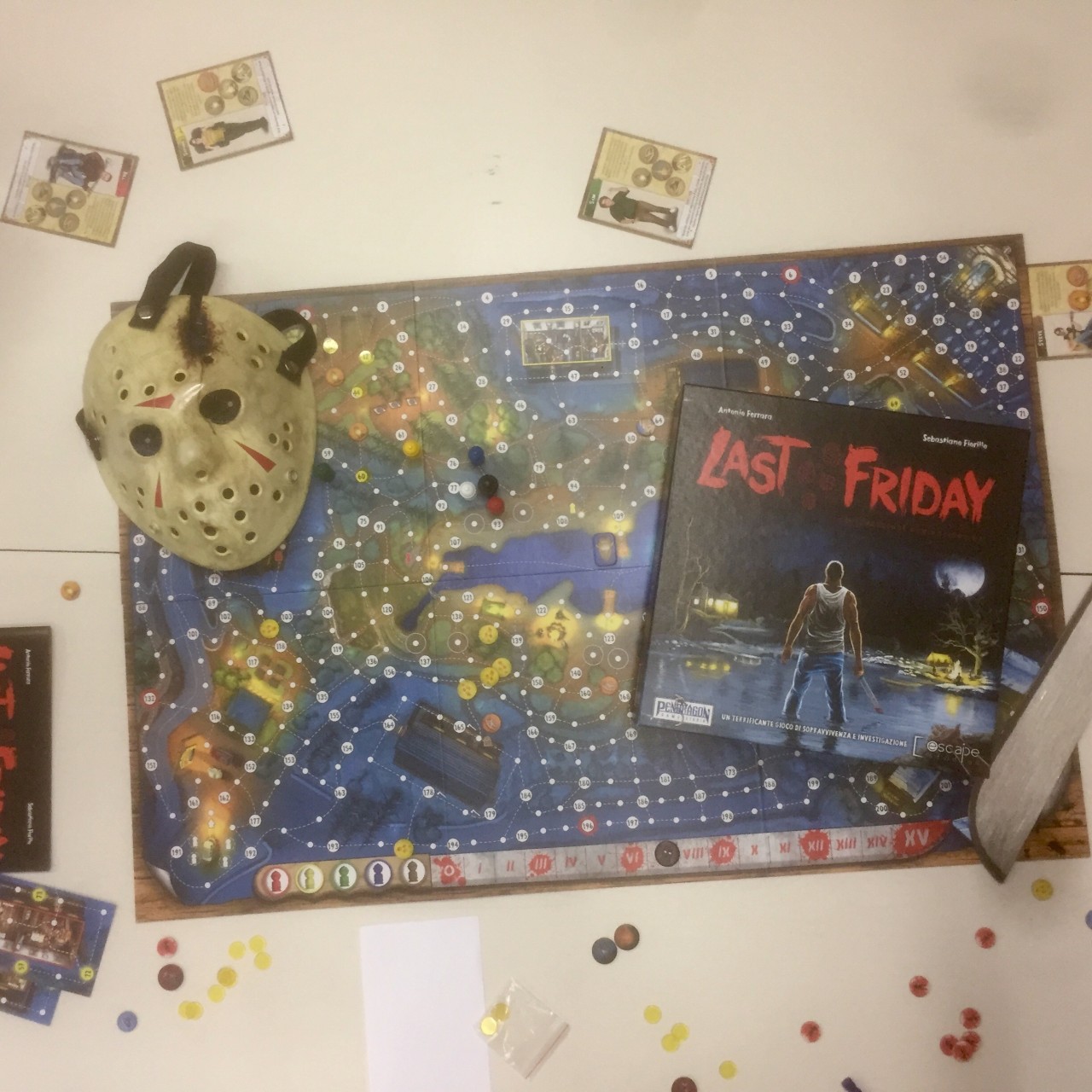 Last Friday è un gioco semi-collaborativo per 2-6 giocatori, pensato ed ideato da due autori italiani: Antonio Ferrara e Sebastiano Fiorillo. Il setting del gioco riprende stralci di film che hanno segnato il genere slasher/horror.Estate del 1980. Ci troviamo a Camp Apache, un luogo che in passato era stato vittima di leggende e dicerie che parlavano di un assassino mai morto. Per volere dei nuovi proprietari però, il camping viene rimesso in piedi e per ristrutturare il luogo afflitto da anni di inattività, vengono diramati annunci che offrono una vacanza gratuita in cambio di aiuto nella ristrutturazione. Noi, insieme ad altri quattro giocatori, impersoneremo uno di questi ragazzi che decide di dare una mano in cambio di una tranquilla e rilassante vacanza…peccato che ben presto scopriremo che le leggende, non erano poi così lontane dalla realt…
