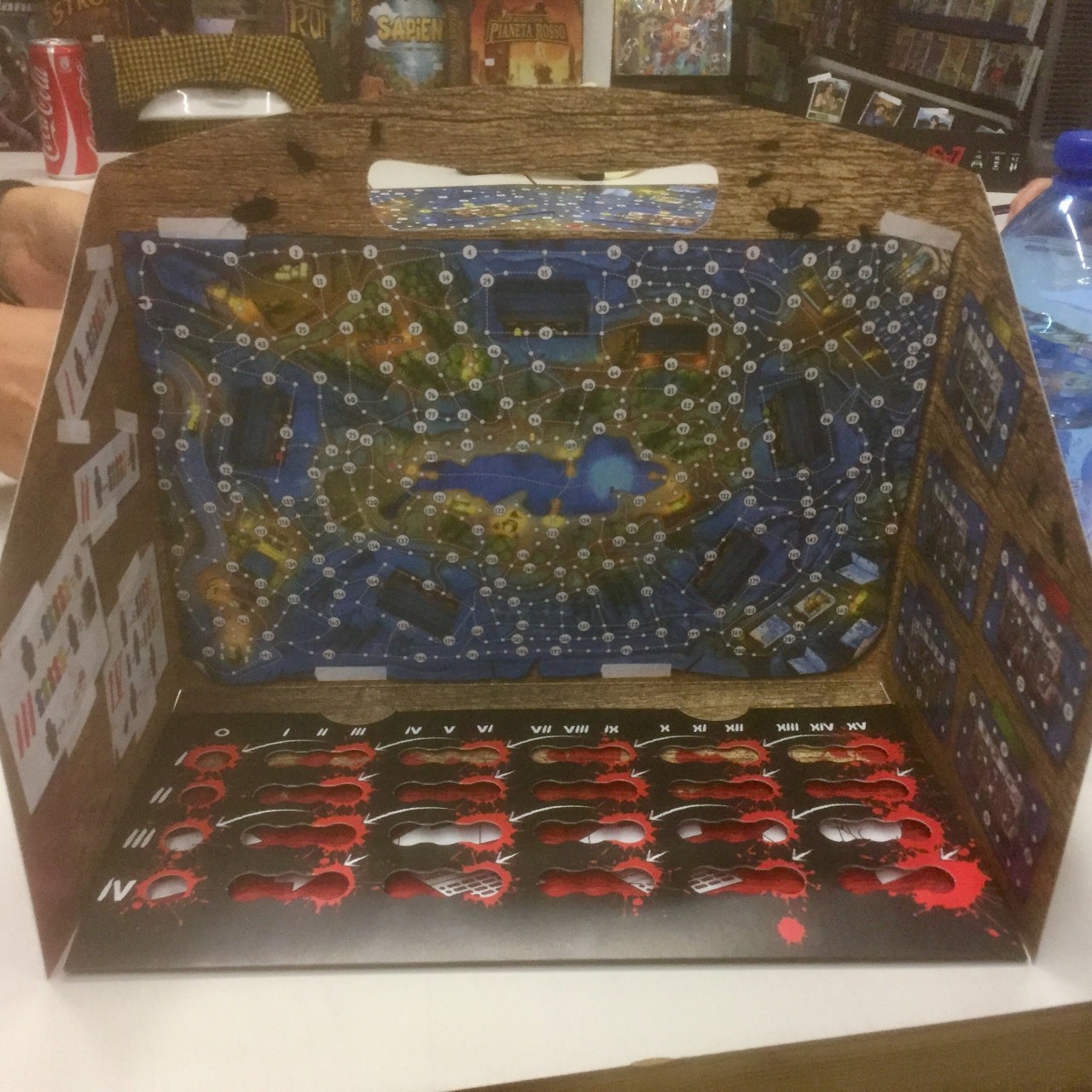 Vi abbiamo parlato di semi-cooperativo perché in ogni partita uno dei giocatori assume il ruolo del serial killer, mentre gli altri giocatori quello dei campeggiatori. Il gioco si sviluppa in quattro capitoli e ognuno di essi è suddiviso in un massimo di quindici round. La suddivisone in atti serve non solo per raccontare una vera e propria storia, ma anche e sopratutto per variare le dinamiche di gioco. Nel primo capitolo, ad esempio, ci siamo trovati a dover scappare dal “mostro” cercando di rifugiarci all'interno di chalet e passare la notte indenni, mentre nel secondo le parti erano invertite, ed essendo pieno giorno, era il mostro che doveva evitare di essere preso da noi. Una dinamica che nella partita che abbiamo potuto giocare, ci ha convinto alla grande, e che regala quel ritmo che serve a divertire ma soprattutto a creare tensione tra i giocatori.Il gameplay vero e proprio è simile per molto aspetti ad altri giochi da tavolo come Lettere da Whitechapel o La furia di Dracula. Il tabellone che rappresenta Camp Apache è suddiviso in tante piccole stradine tratteggiate, all'interno di questi tratteggi trovano spazio pallini bianchi e pallini numerati; su quelli bianchi si muovono i ragazzi, mentre su quelli numerati - ovviamente segretamente perché l'assassino si muove nell'ombra - il serial killer. Il turno di ogni giocatore è velocissimo, tanto che il downtime è praticamente inesistente.
